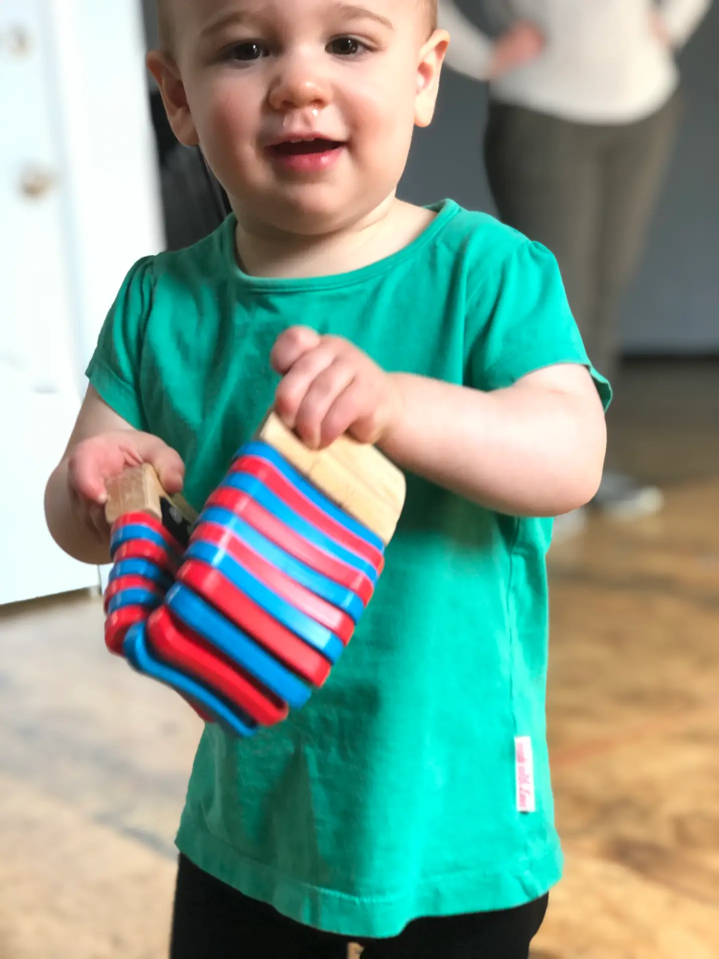 They grow and change so quickly in the first few years of their life that every class is a different experience for them. One week they are just starting to grasp bells; next week, they are bringing them to their mouth; and the next week, they are beginning to shake the bells and discover what sounds they have created! These huge milestones come from repeated chances to experience bells each week!
